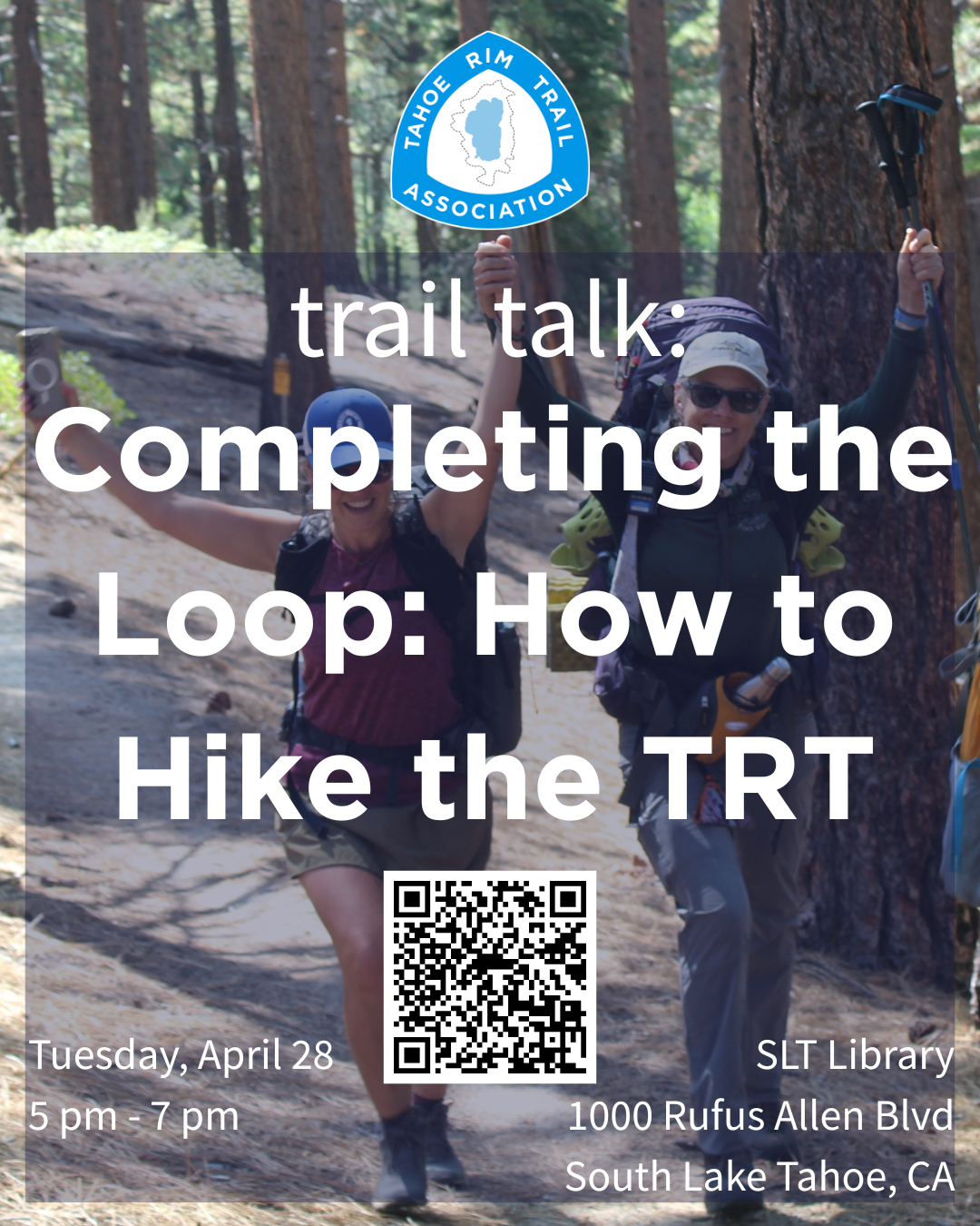 TRTA Trail Talk: How to Hike the TRT📍 South Lake Tahoe Library1000 Rufus Allen Blvd, South Lake Tahoe, CA 96150🕔 5:00 PM – 7:00 PM Join the Tahoe Rim Trail... Read more »